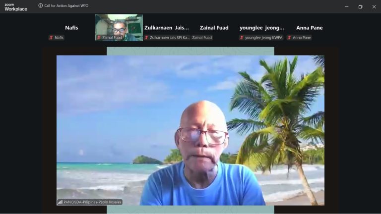 Dari sektor perikanan, Pablo Rosales mengungkap dampak langsung WTO terhadap nelayan. “WTO adalah agen perusak sektor perikanan di Filipina. Janji kesejahteraan tidak pernah terwujud, yang ada justru kemiskinan dan hilangnya akses terhadap sumber daya,” ujarnya. Ia menegaskan bahwa sumber daya alam harus dilindungi dari privatisasi dan kepentingan korporasi.